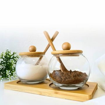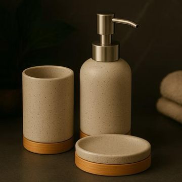 Kit para Lavabo 3 peças em Cerâmica com Detalhes em Bambu