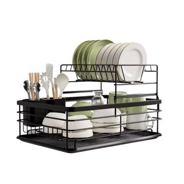 Escorredor de Louças Rack Organizador 2 Andares Preto