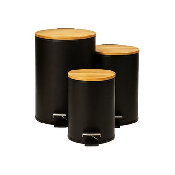 Lixeira Tampa de Bambu 9, 5, 3 Litros Inox Luxo Preta Pedal Cesto Removível Banheiro C/ Alça